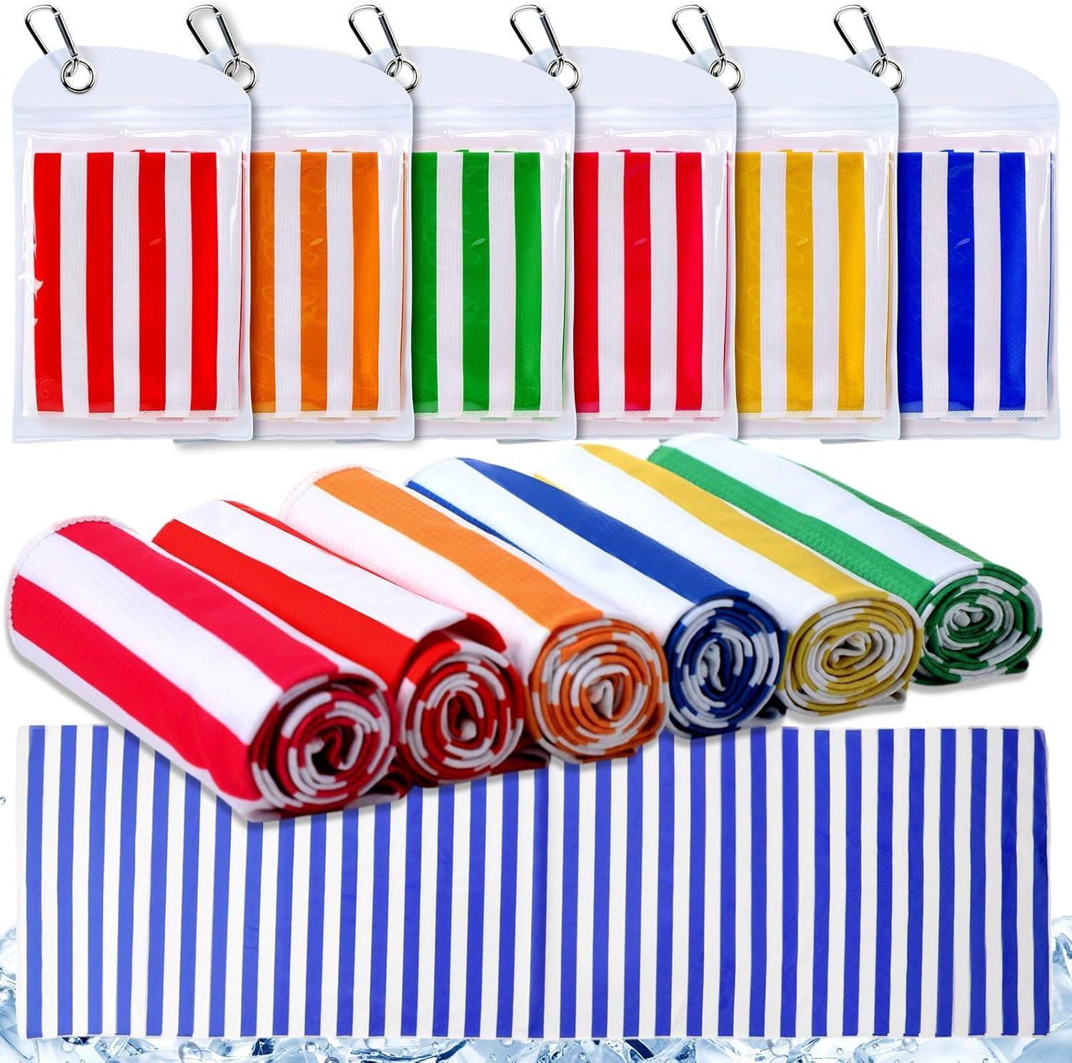 - Set Includes: you will receive a set of 12 cooling neck and face towels, each adorned with a stripe pattern; There are 6 different designs, with 2 towels for each design; This ample quantity is enough to meet your daily cooling needs, making it perfect for sharing with friends, teammates, or colleagues; It serves as a thoughtful and practical gift, providing comfort in hot weather