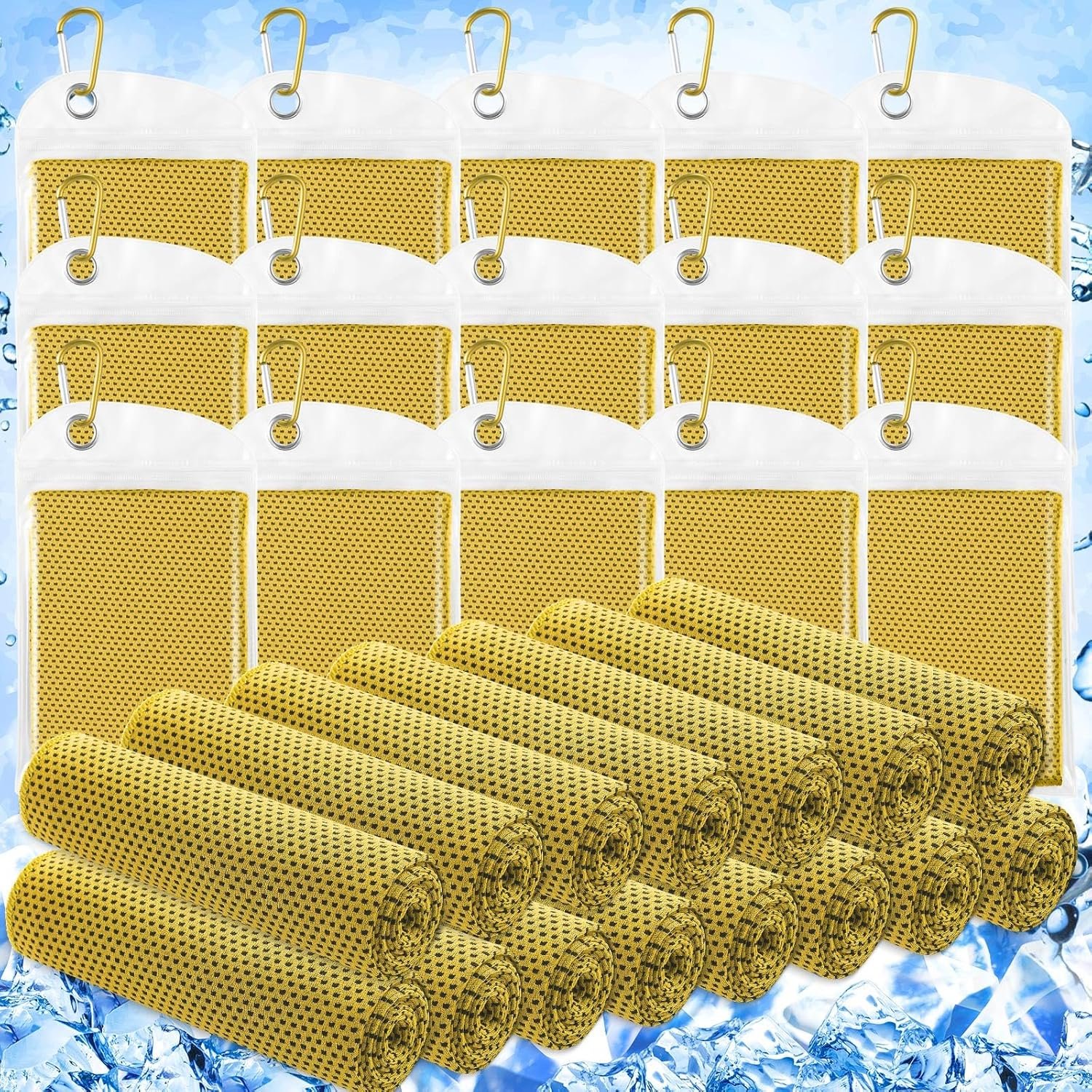 - Package Included: there are 15 cooling towels in the package, enough to meet your daily use and replacement needs; Cooling towels for neck and face are ideal for gyms, companies, schools, outdoor competitions and communities, and 15 climbing bags can help lock in the moisture in the towels for longer use