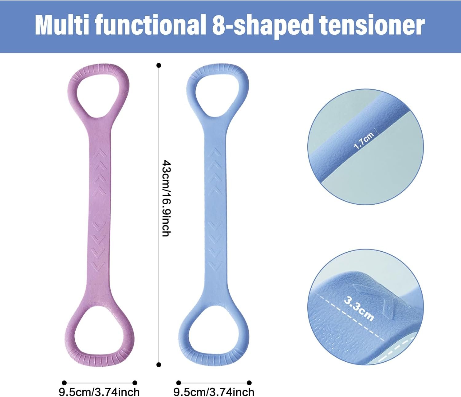 - 【Upgraded Elasticity Resistance Bands Set】Package contains 1pcs Purple and 1pcs Blue Resistance Band,1 pair of black wristbands and 1 pair of blue wristbands.Made of natural latex, designed with an 8 shape, perfectly fits your hands and body, which is ergonomic and makes it more comfortable to use, help to relieves stressed hand and reduce frictional injuries.