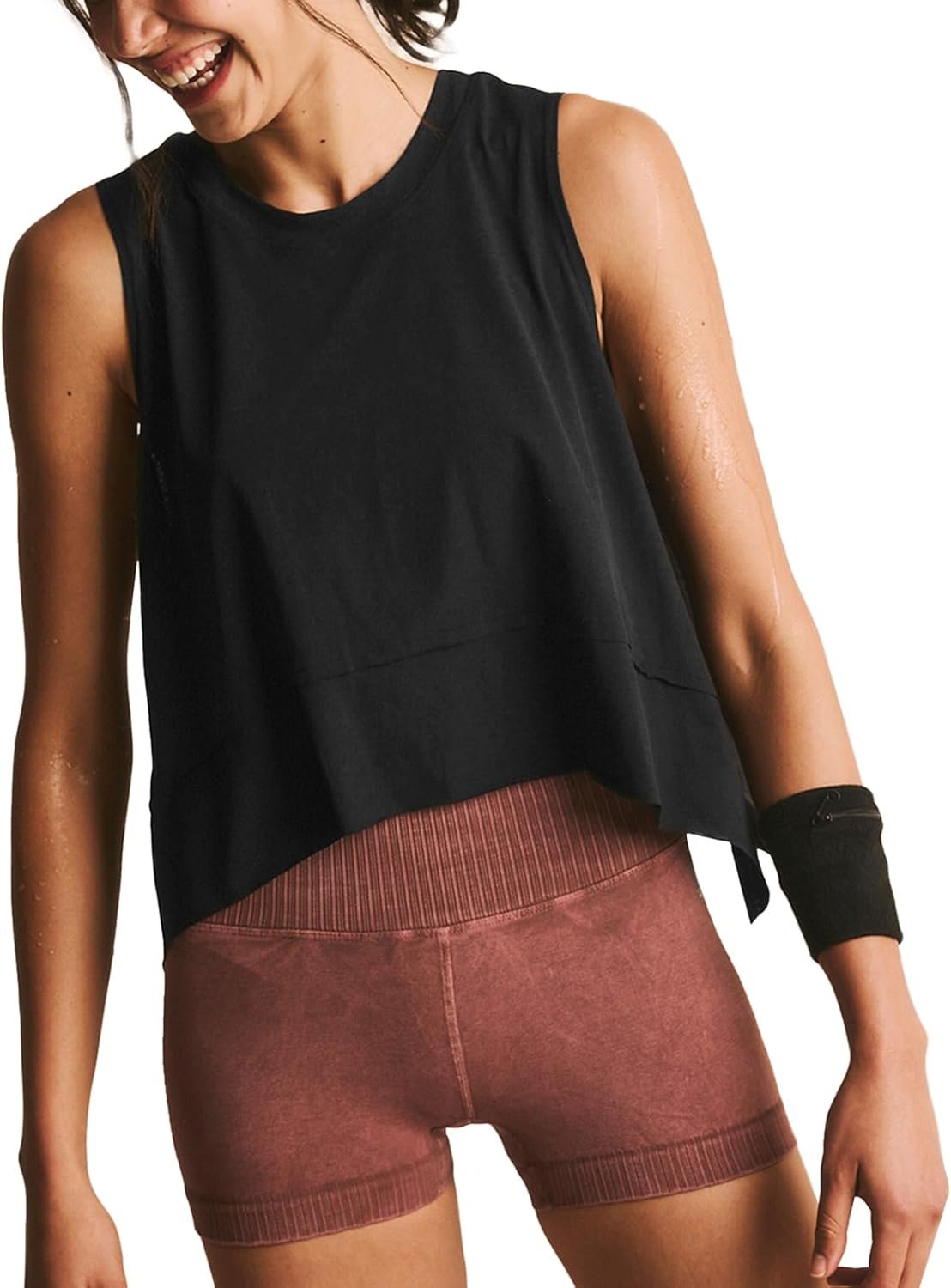 • DESIGN:Asymmetrical Hem,Loose Fit,Sleeveless,Wide Armholes,Line Stitching Design,combine fashion and practical, keep you cool and comfy while doing exercise.